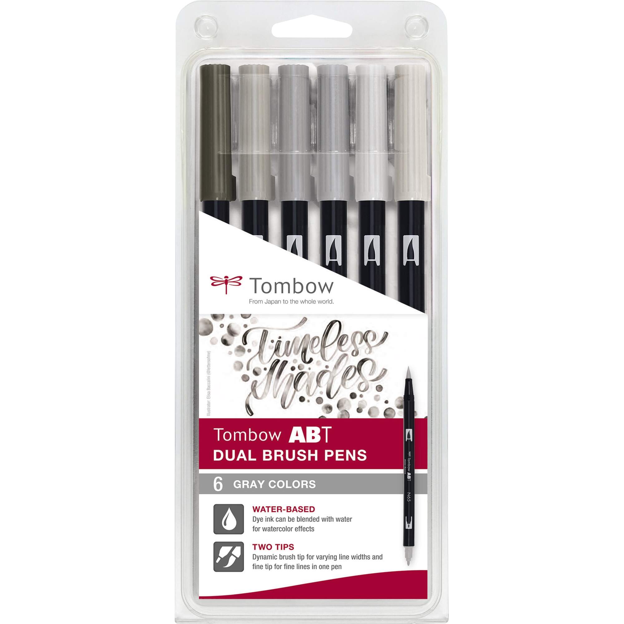 Tombow Pinselstift ABT Dual Gray Colors 0,8mm farbig sortiert 6 St./Pack.